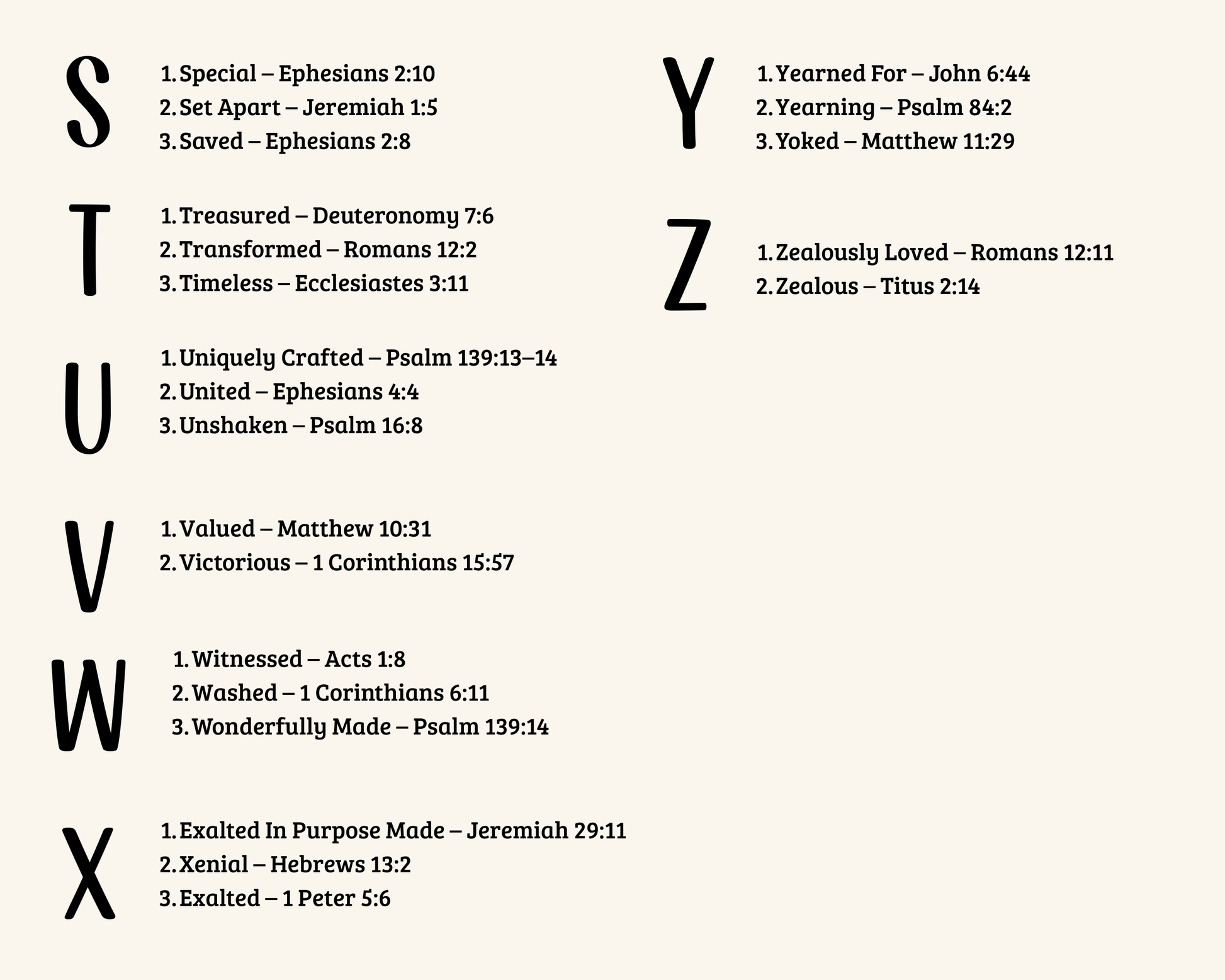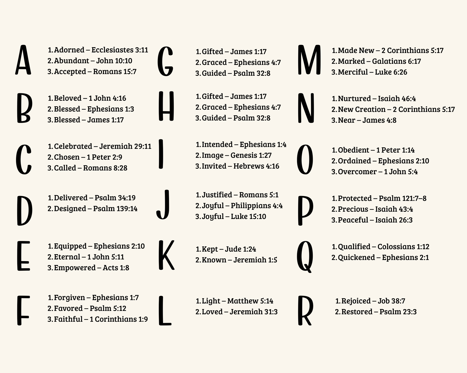 Each ornament features your name vertically spelled out with powerful Bible verses that reflect your spiritual worth and God’s truth. A perfect keepsake for women of faith, Christian friends, or anyone who loves Scripture-inspired decor.