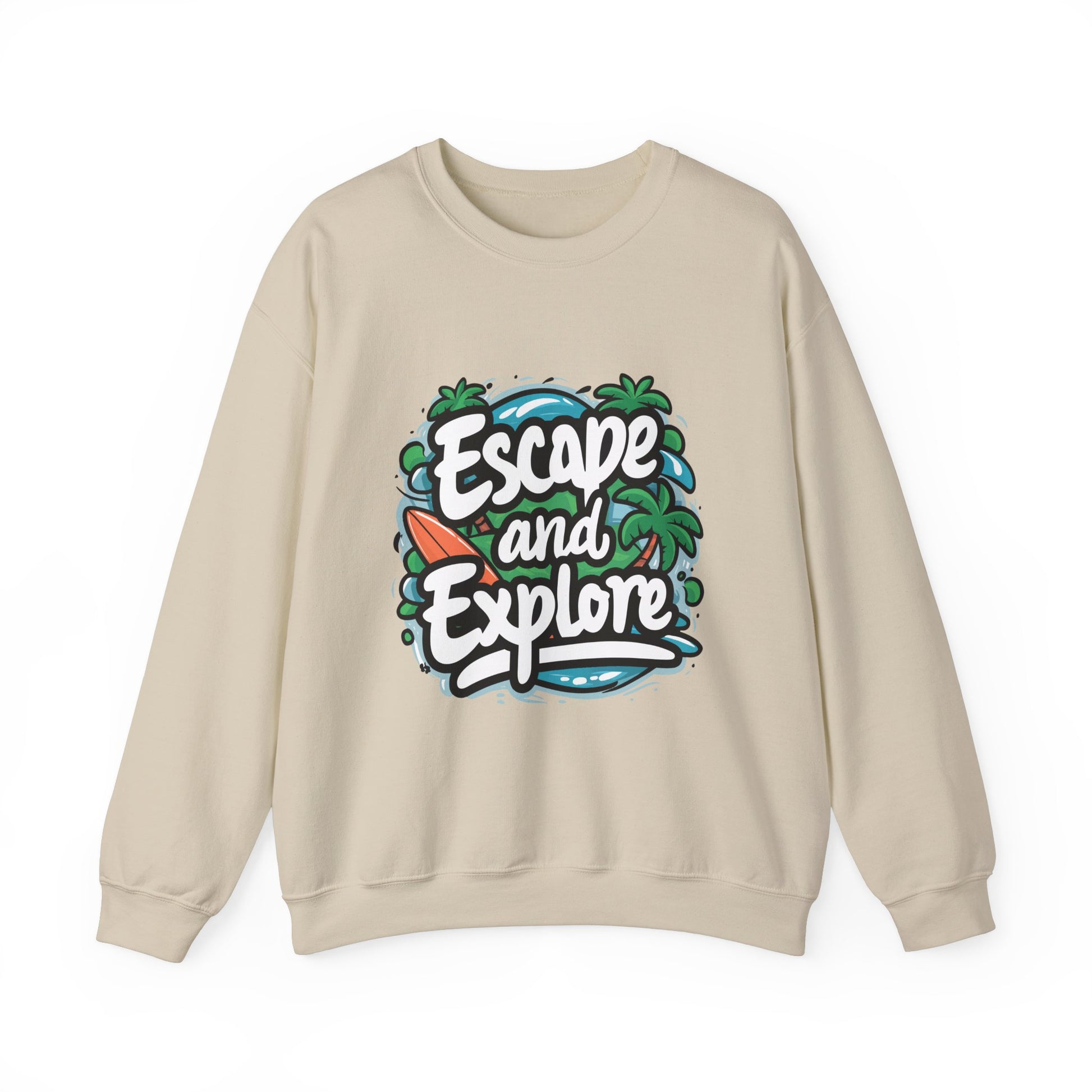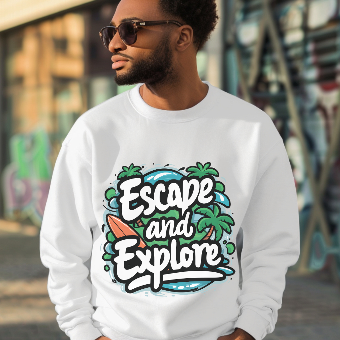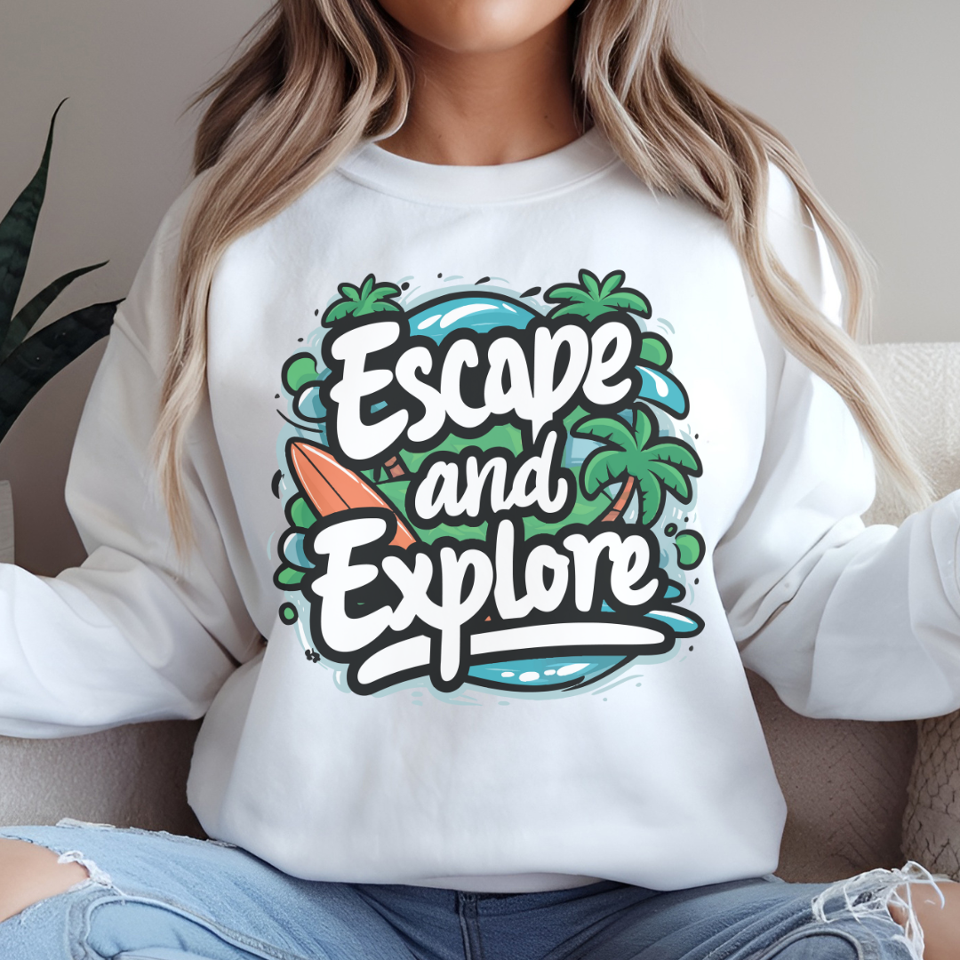 Introducing our cozy Crewneck Sweatshirt, perfect for those brisk days when comfort and style go hand in hand. With its inviting 'Escape and Explore' design, this sweatshirt brings a sense of adventure and relaxation into your everyday life. Ideal for outdoor enthusiasts, travelers, or anyone who loves to embrace the spirit of exploration, it's a versatile addition to your wardrobe. Perfect for cozy nights by the fire, casual outings with friends, or as a thoughtful gift for loved ones. Great for holidays like Thanksgiving, casual family gatherings, or simply enjoying a weekend getaway.