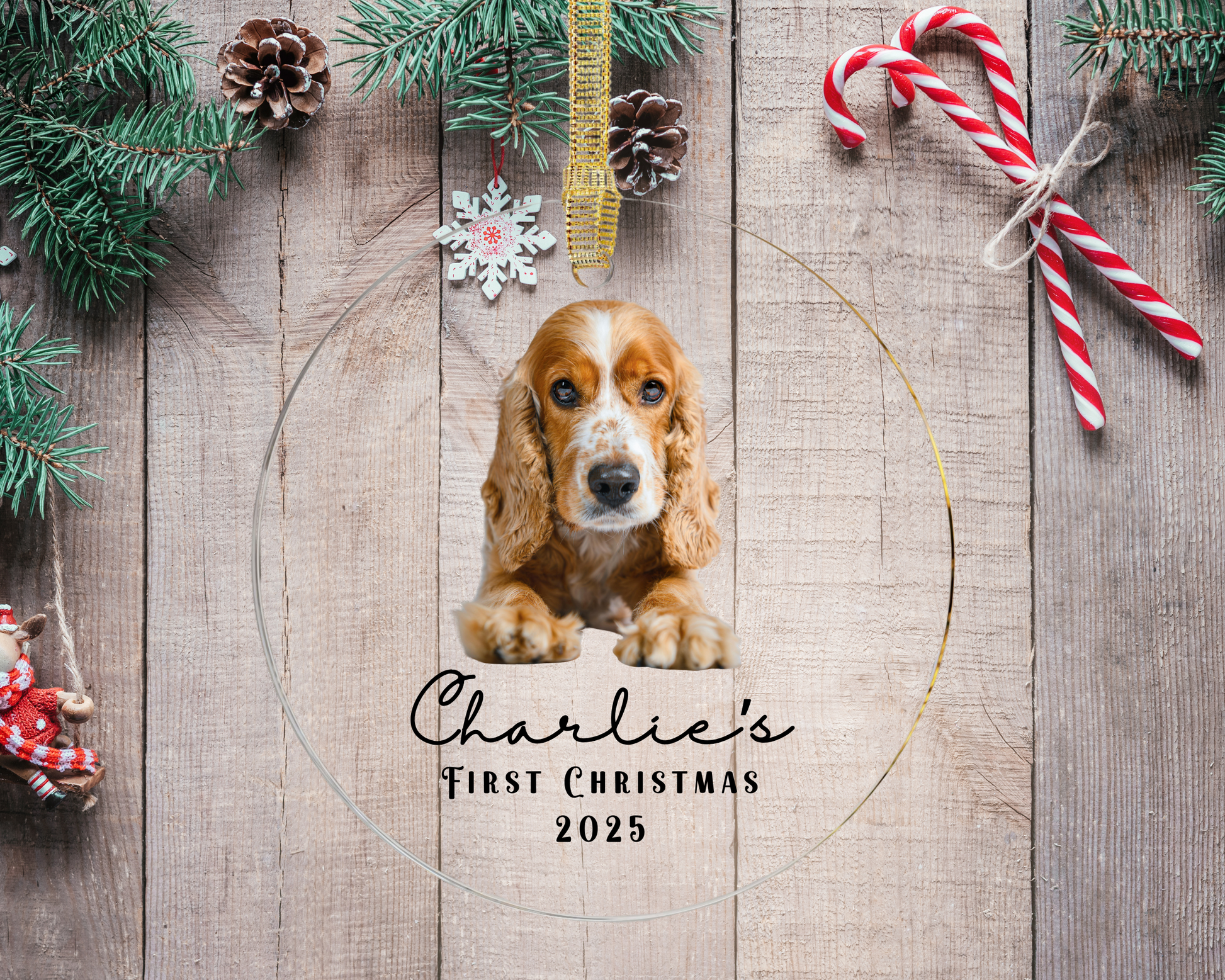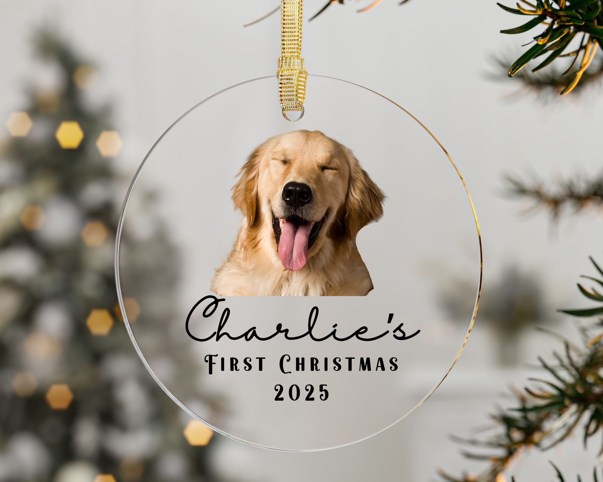 Celebrate your furry friend’s first Christmas with our Personalized Pet Photo Ornament — a heartwarming keepsake that captures your dog’s personality in the most festive way!