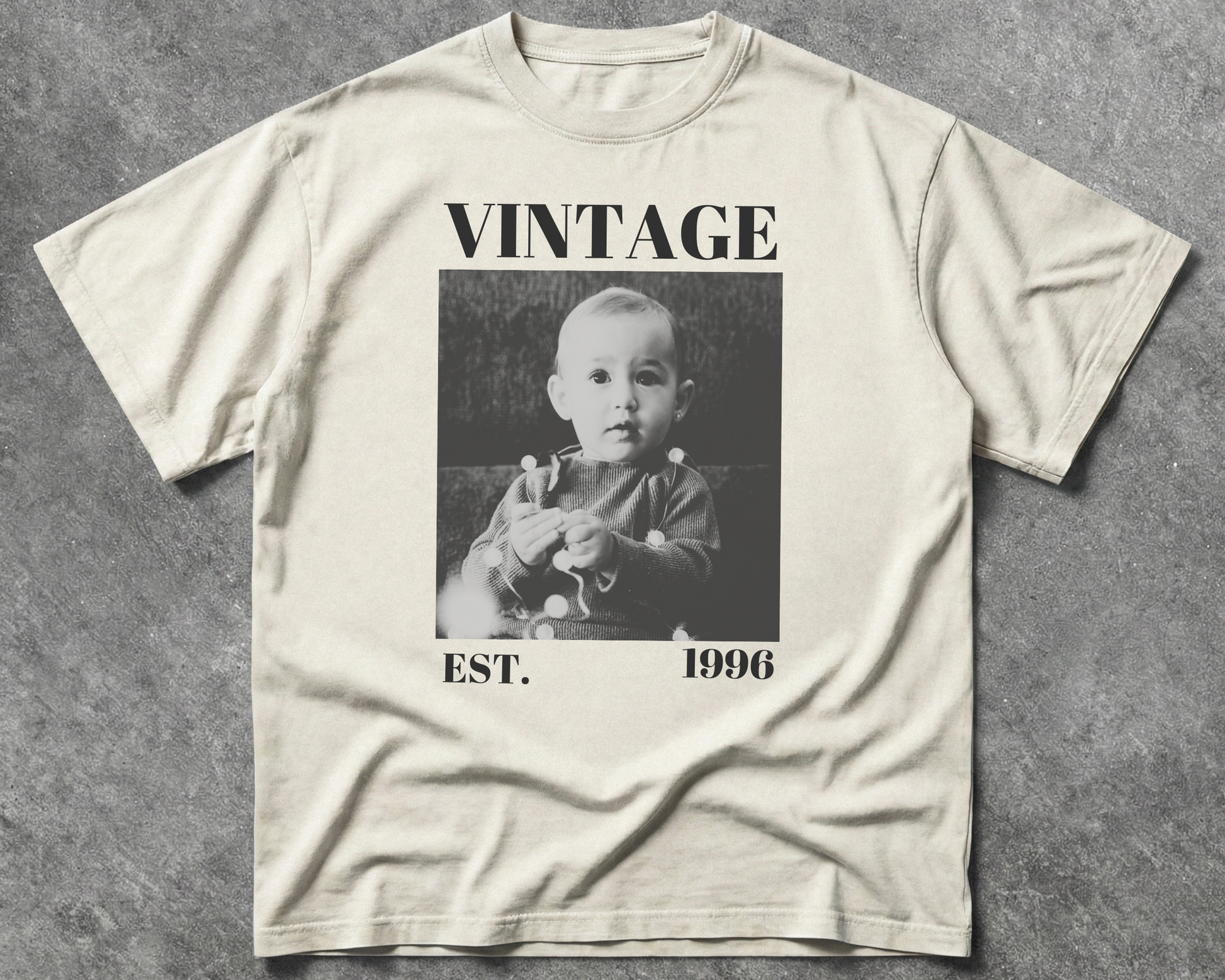 Every year tells a story. Our Vintage Year design transforms your year into a timeless statement inspired by classic retro typography and nostalgia that never fades.